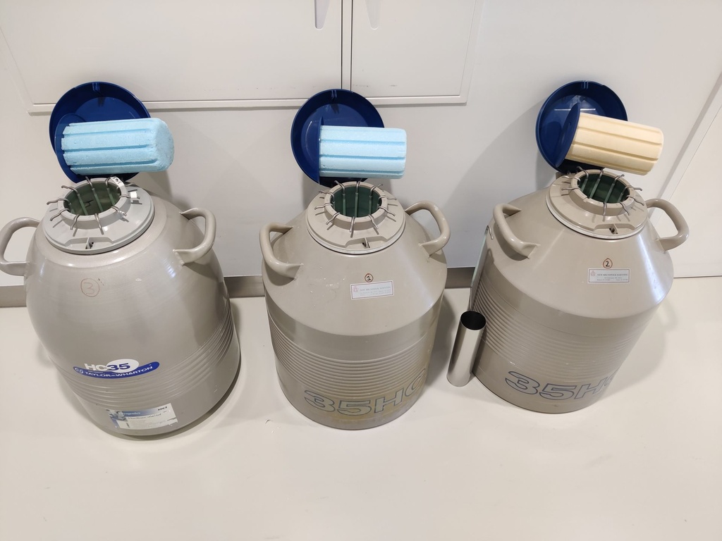 3 Cryogene opslagtanks elk met 10 kanisters, compleet met 120 stuks cryo rieten