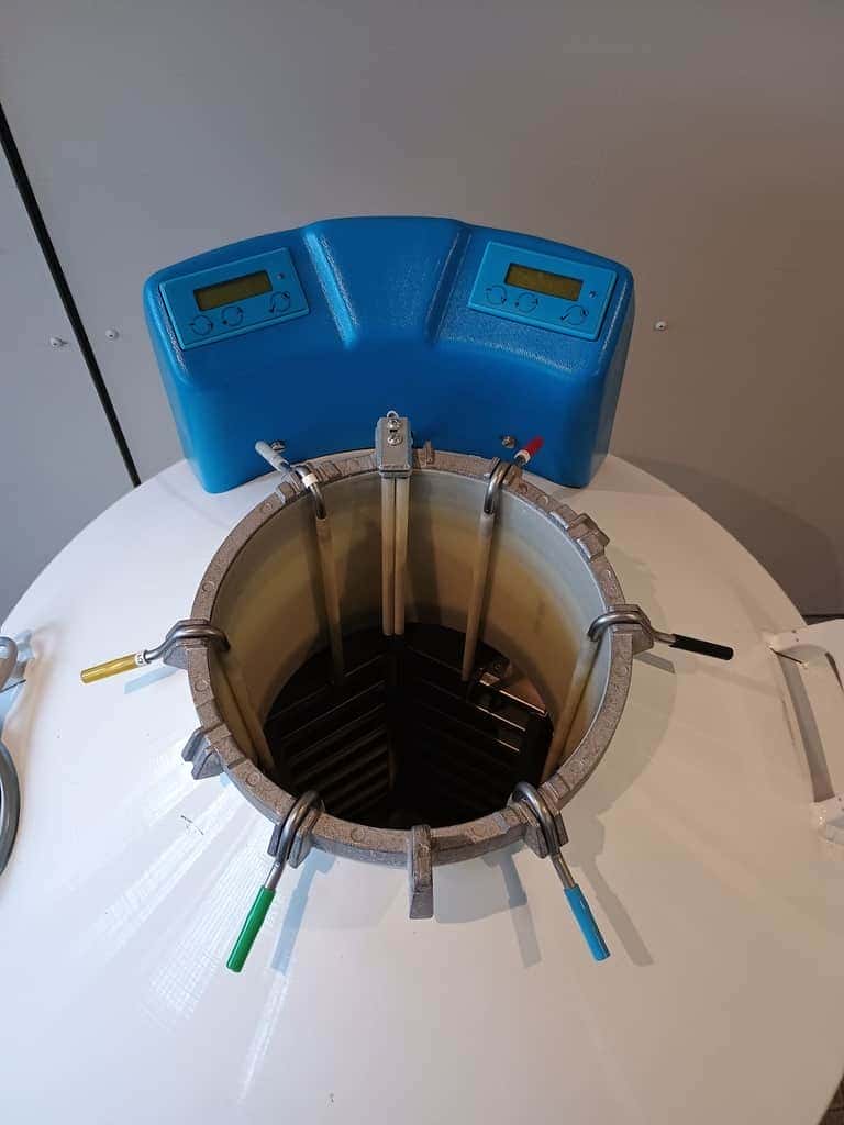 Dit is een Liquide Arpege 140 met een rolvoet en zes rekken. Deze machine is geleegd en gedroogd volgens de instructies van de fabrikant. Deze vaten zijn ontworpen voor langdurige opslag van biologische monsters in cryovials en -zakken. Gemaakt van aluminium en composietmaterialen. Lichtgewicht en lange bewaartijd. Optimale veiligheid: systeem ontworpen om elke opslagdoos op zijn plaats in het rek te houden.