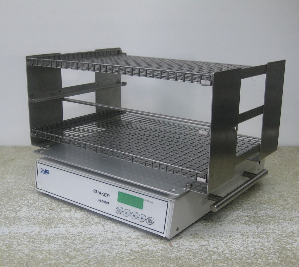 Een platform shaker met een dubbel platform van 25 x 35 cm. van GS-instruments. Hoogte in onderste platform: 12 cm.