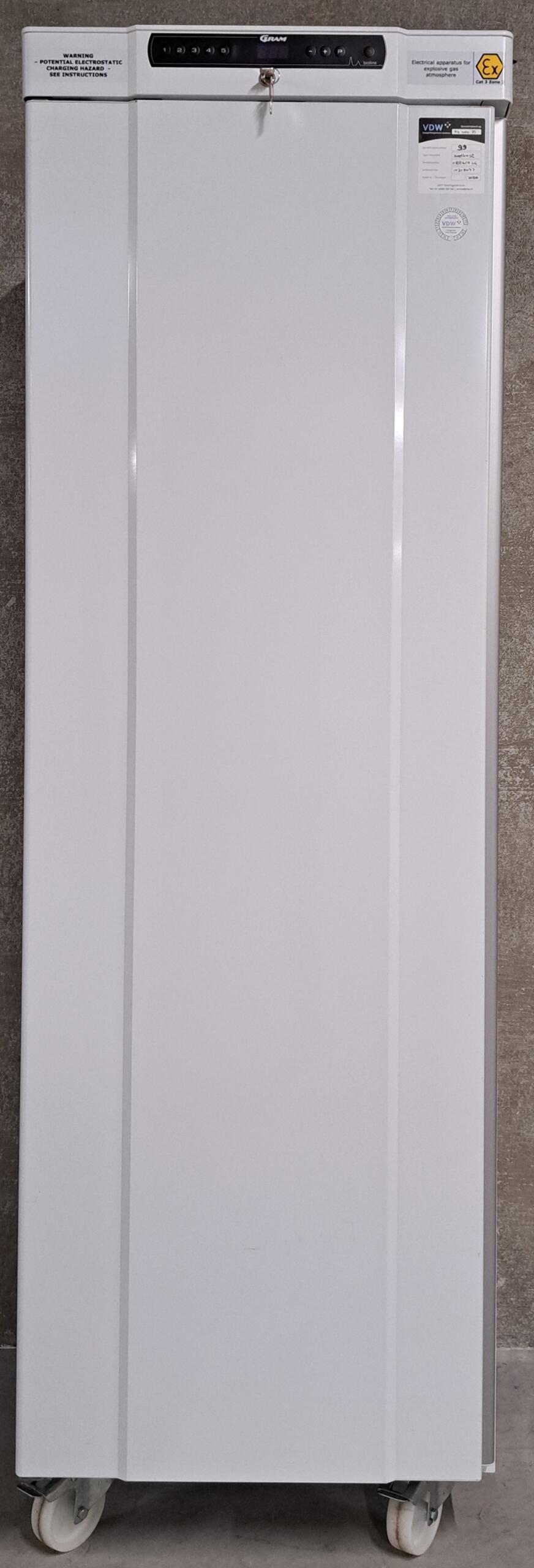 Weinig gebruikte Gram BioCompact II RR410 medicijnkoelkast met 4 kunststof gecoate draagroosters en wielen. De medicatiekoeler is geschikt voor plaatsing in Categorie 3 Zone 2 ATEX-zones en heeft een digitaal display.