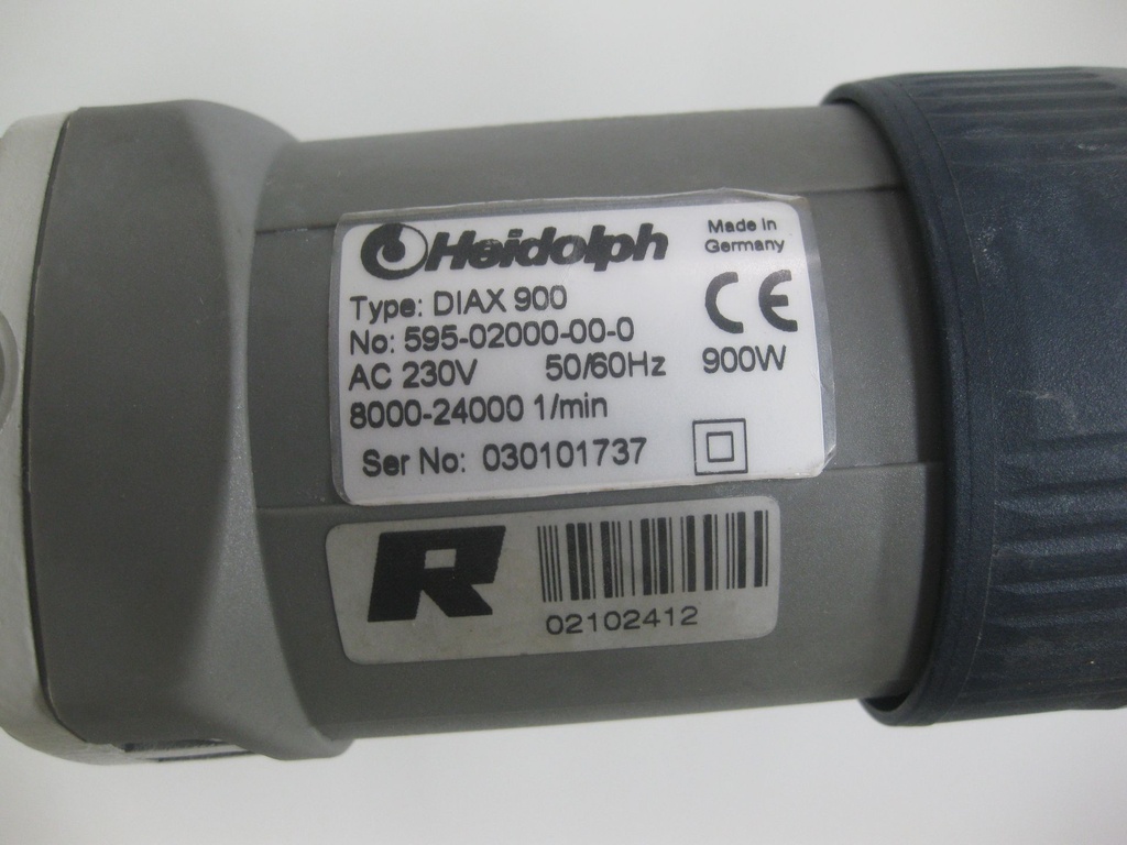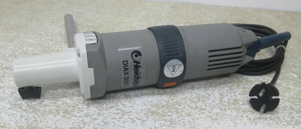 Een Turrax Diax 900 body van Heidolph voor homogeniseren, dispergeren en emulgeren. Vermogen: 900 W. Met een regelbare snelheid van 8000-24.000 rpm. en een snelle OFF button. Geschikt voor een viscositeit van 1 – 5000 mPa.S. Geschikt voor schachten (tools) van 18 – 25 mm.