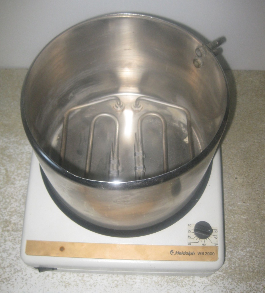 Een waterbad van Heidolph, specifiek voor het gebruik bij een filmverdamper. Vermogen 1kW. Regelbare temperatuur instelling tot 100 graden.