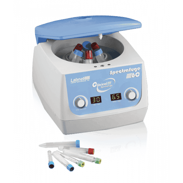 Een kleine centrifuge van Labnet, type spectrafuge 6C voor volumes van 6 x 15 ml.