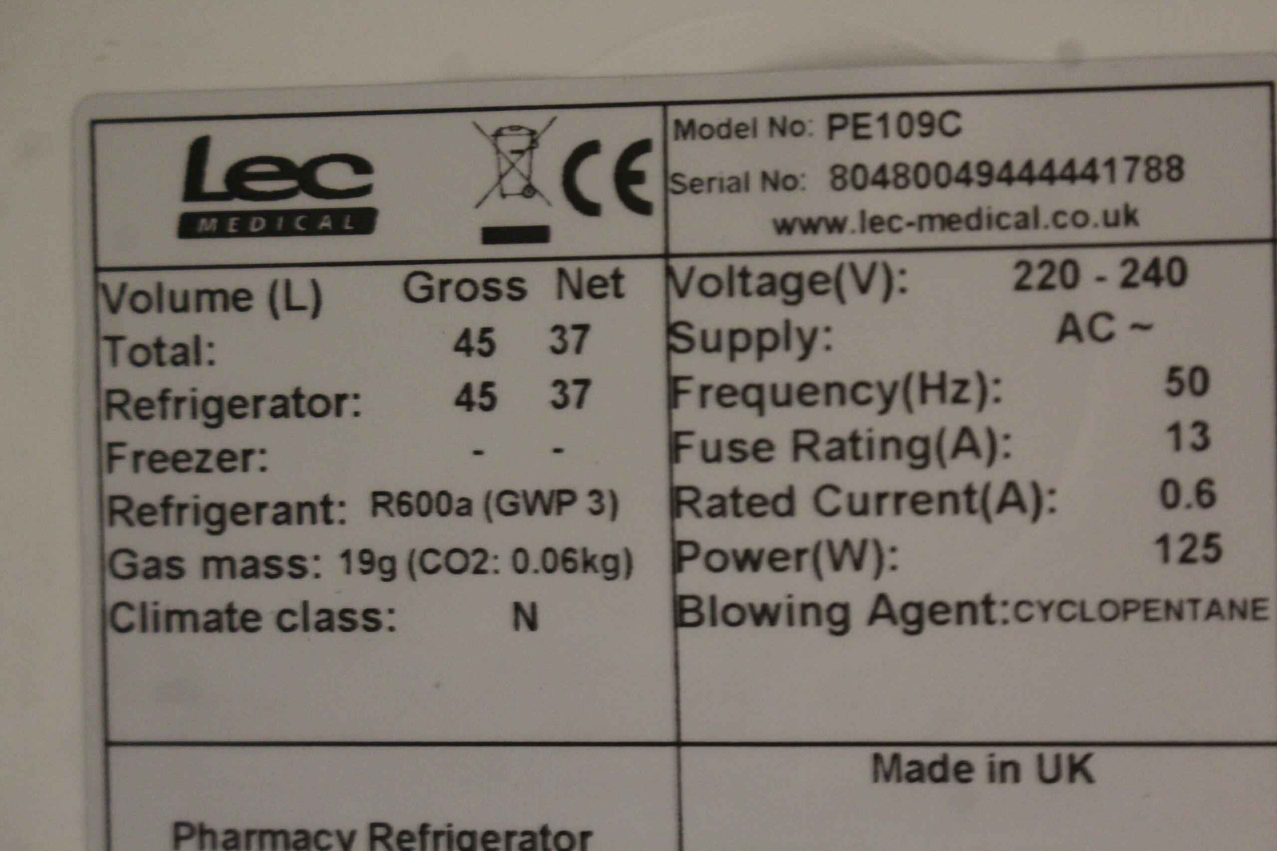 LEC PE109C Medicijn Koelkast