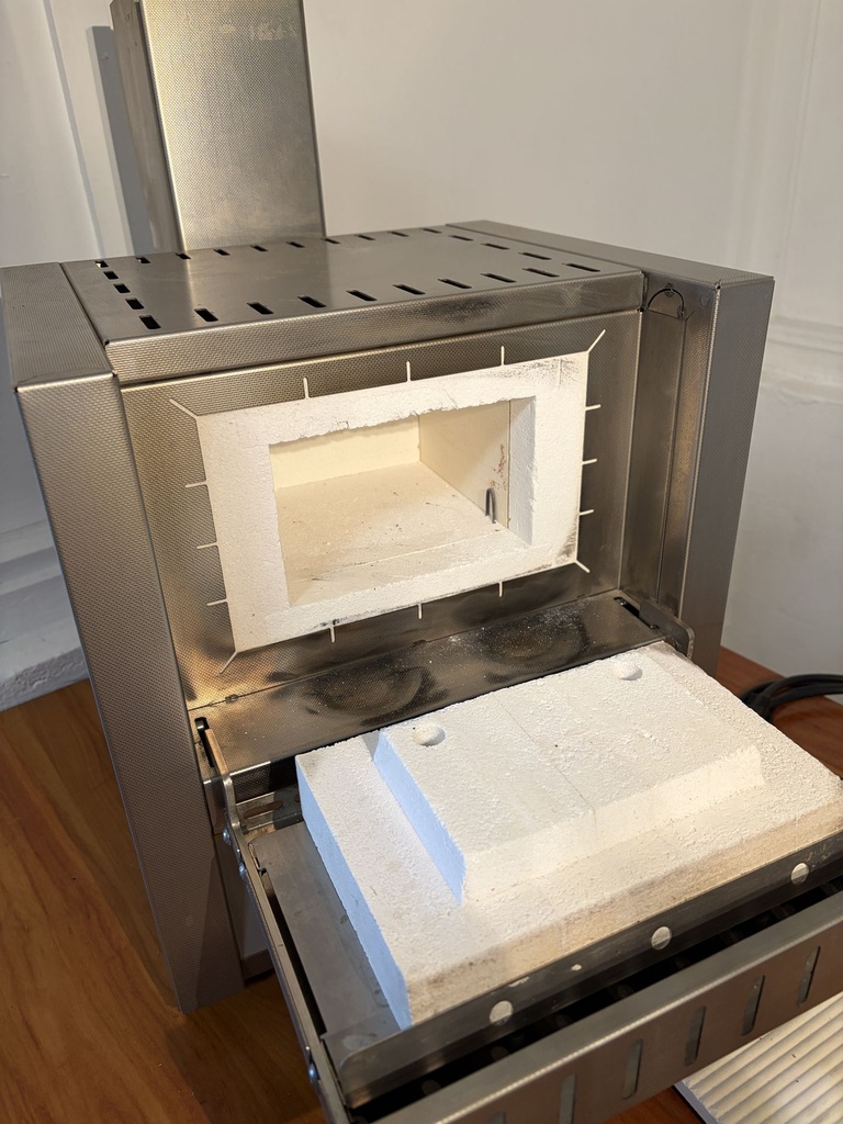 De externe afmetingen van deze moffeloven bedragen 400 mm breed, 600 mm diep en 405 mm hoog.