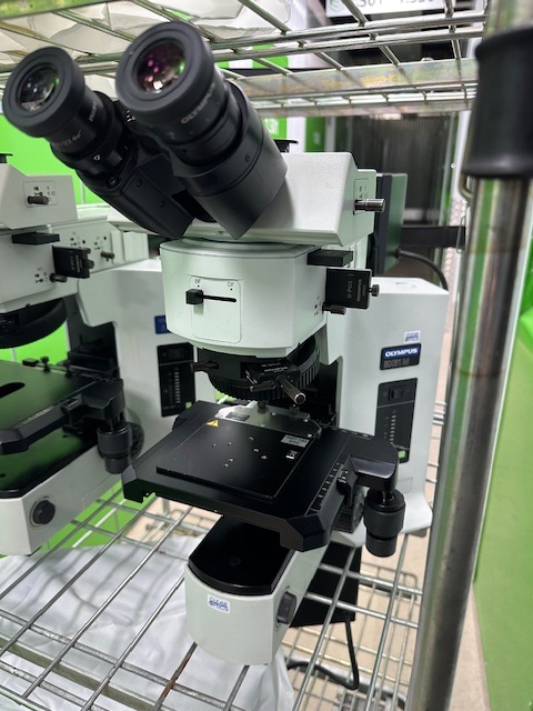 Deze Olympus BX51 microscoop is geheel gereviseerd en is uitgerust met interferentie contrast (DIC).