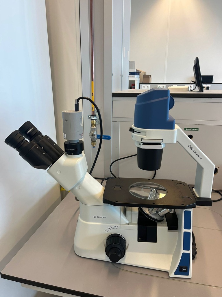 Mooie omkeermicroscoop met in nieuwstaat. Hij is vrijwel niet gebruikt aangezien we voor onze werkzaamheden meestal een ander type microscoop nodig hebben. Dit is ook waarom we hem verkopen.
