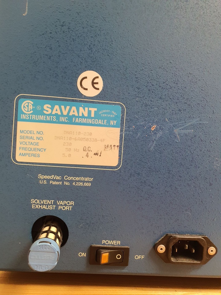 Dit apparaat is een SpeedVac-concentrator, specifiek een DNA SpeedVac.