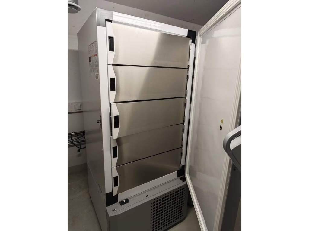 Deze ultralage temperatuurvriezer is een recent model (2022) en is uitgerust met een watergekoelde (!) condensor. Hij beschikt over vijf geïsoleerde binnencompartimenten, elk met een aparte deur om temperatuurverlies tijdens het openen en sluiten te minimaliseren.