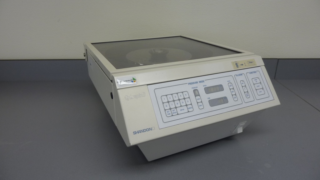 De Shandon CytoSpin 3 cytocentrifuge was het eerste apparaat dat centrifugale kracht bij lage snelheid gebruikte om een ​​monolaag cellen te scheiden en op objectglaasjes af te zetten, met behoud van de cellulaire integriteit.